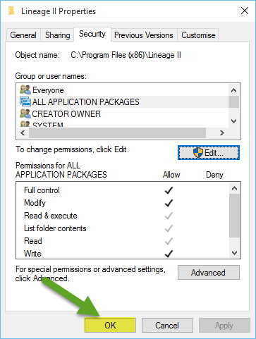 • Right click on the Lineage II folder and select properties