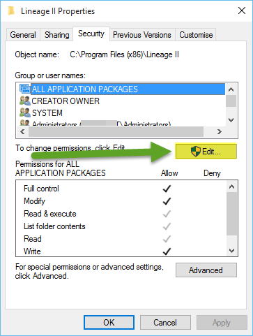 • Go to the Security Tab and click on Edit