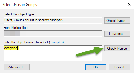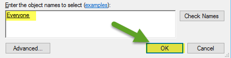 • Type “Everyone” (might be different depending on your OS language), then click Check Names